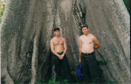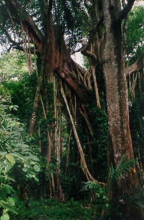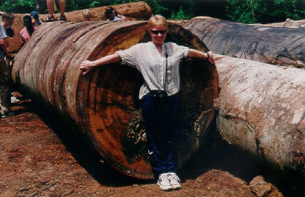 mellom enorme trær.