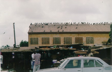 gata...og på taket satt gribbene.